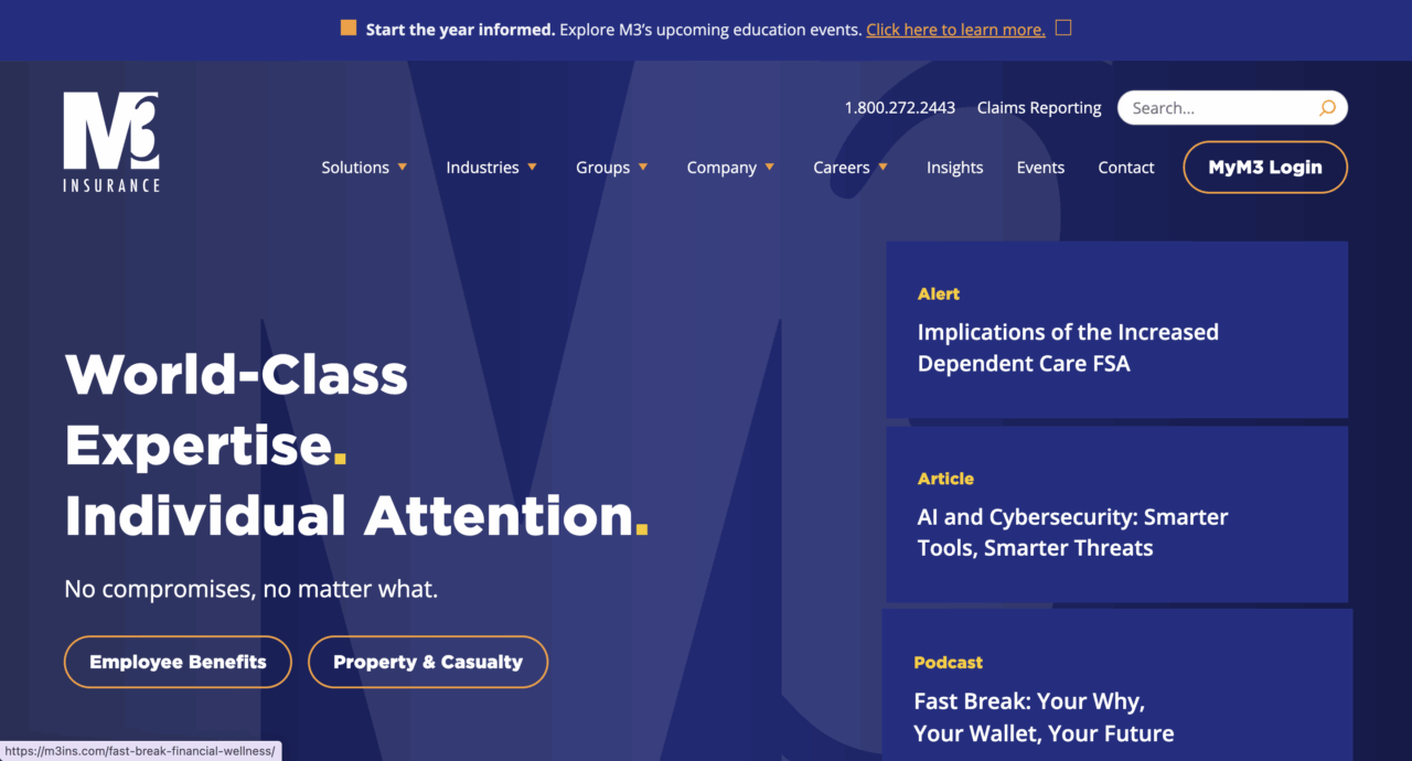 Headquartered in Madison, Wisconsin, and based in 1968, M3 Insurance coverage is a non-public and impartial insurance coverage dealer and danger administration agency. The corporate provides a variety of providers and merchandise together with property and casualty protection, worker advantages applications, retirement and wealth administration options, HR providers, and extra.