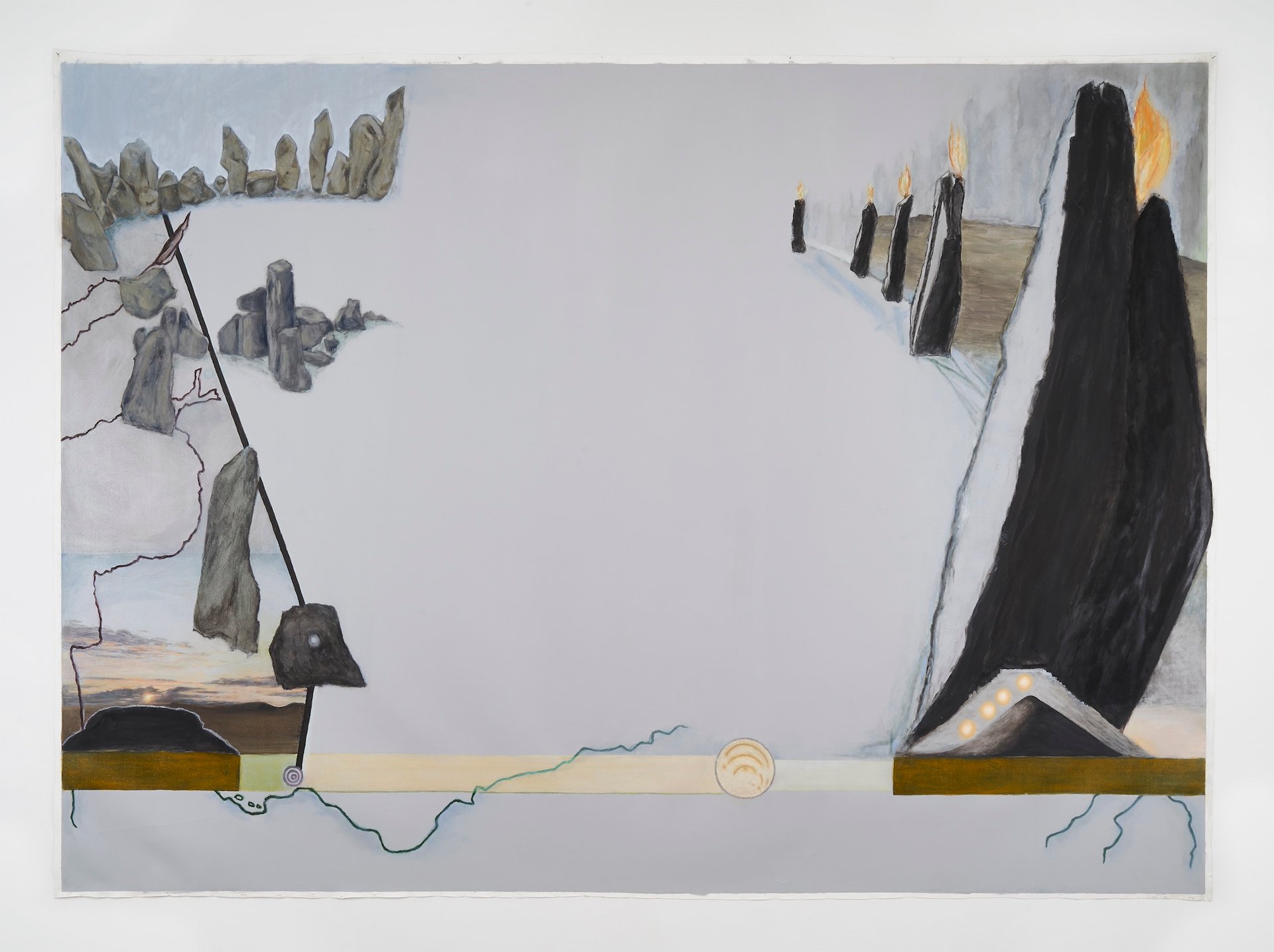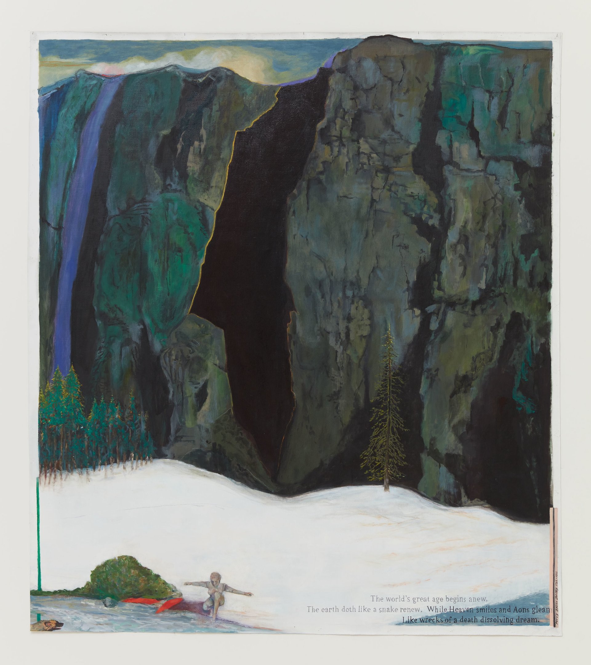 Jo Baer, Snow-Laden Primeval (Meditations, on Log Part and Declinerampant with Flatulent Cows and Carbon Automobiles), 2020 © Jo Baer, courtesy Tempo Gallery